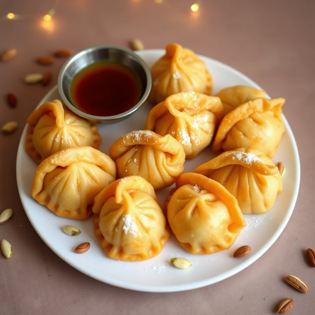 홀리 하면 가장 먼저 떠오르는 간식은 단연 **구지야(Gujiya)**다. 바삭한 튀김 속에 달콤한 코코넛과 건과일, 설탕, 우유를 졸여 만든 코야(khoya)가 가득 들어 있어 한 입 베어 물면 진한 단맛이 입안 가득 퍼진다. 축제 전날부터 가족들이 함께 모여 구지야를 빚는 풍경은 인도 가정의 전통적인 홀리 준비 과정의 일부다.